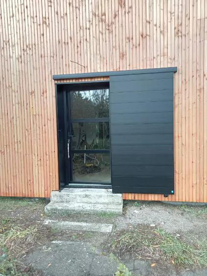 Bardage bois Faux Claire Voie – Volets alu coulissants (Guérande)